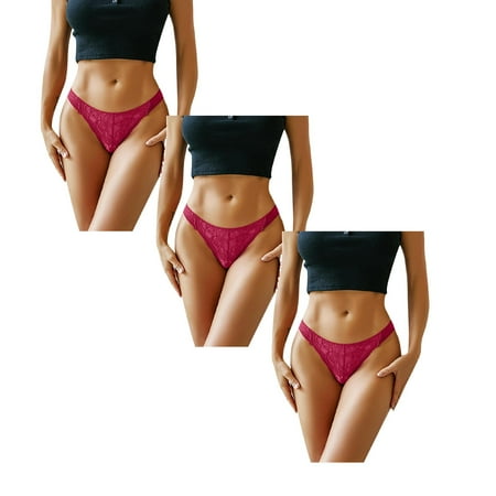 Womens Underwear Brief Lace Thong Low Waist Female Underpant Hollow Out Breathable Cotton Seamless Panties3PC