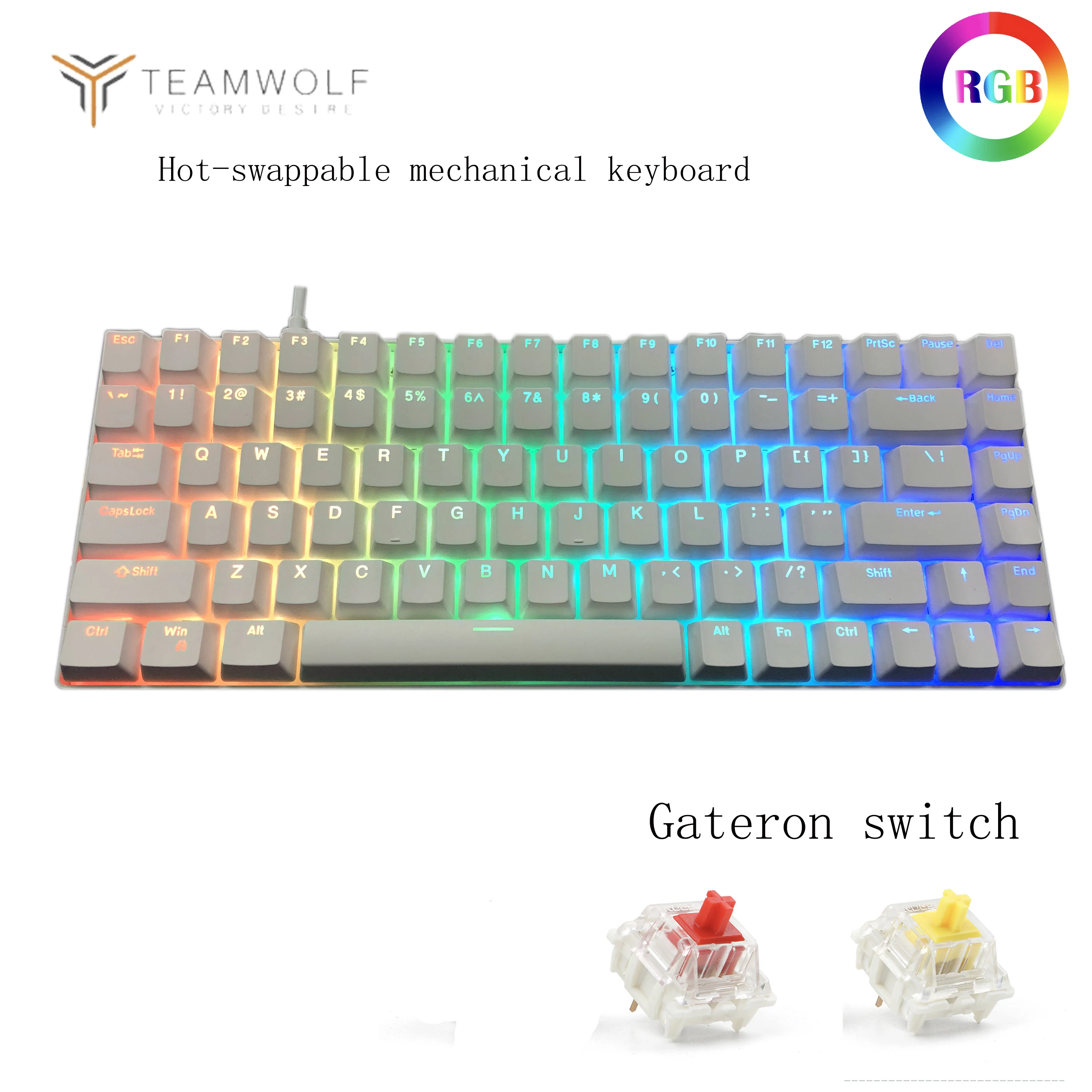 Игровая механическая клавиатура Metoo AK84 RGB с горячей вилкой, желтая/красная клавиатура Gateron с 84 клавишами, проводной съемный кабель, музыкальн...