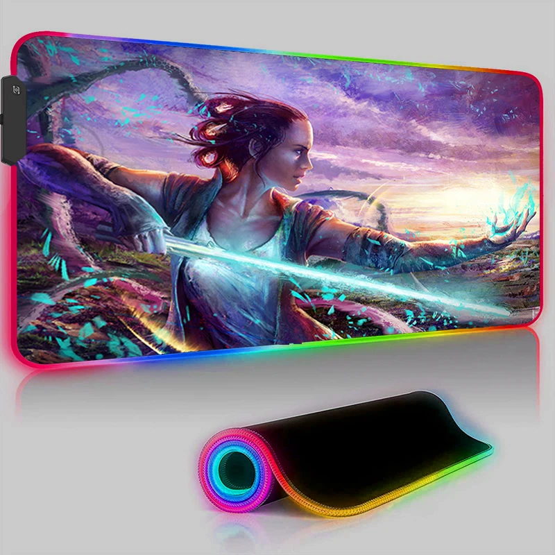 Игровой коврик для мыши с RGB светодиодный, Звездные войны, Рей, аксессуары для ПК, подсветка, коврик для мыши, крутые игровые коврики, компьют...