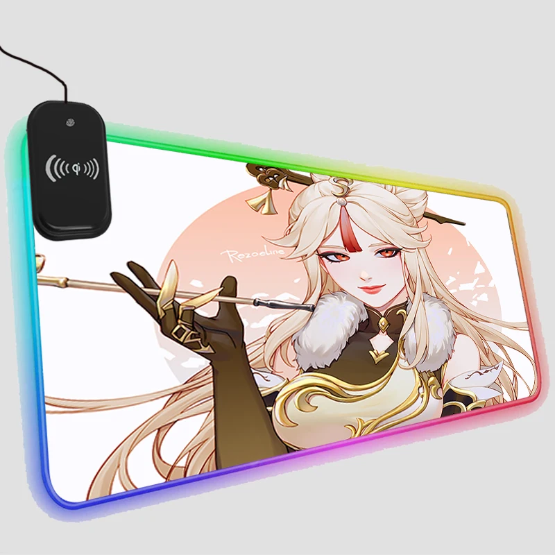 Игровой коврик для мыши Genshin со светодиодной подсветкой и функцией беспроводной зарядки