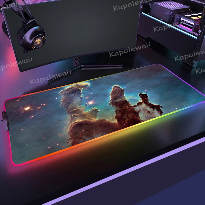 Игровой коврик для мыши RGB, игровой коврик для клавиатуры и мыши, аксессуары для игр, компьютерный коврик XXL, коврик для ковровой дорожки, космос, ПК, Настольный коврик