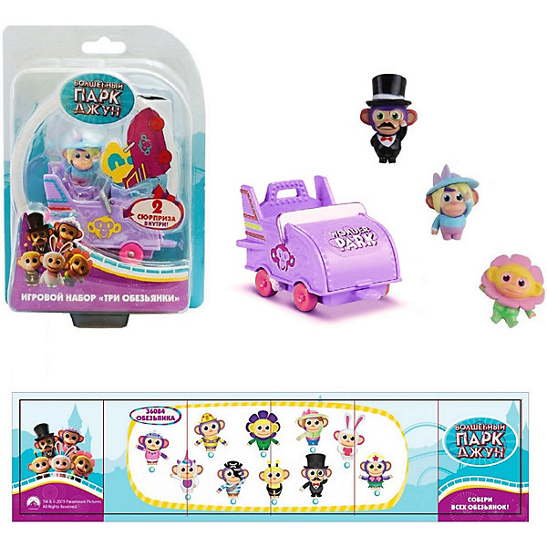 ∙ в наборе: 3 фигурки обезьянок (2,5 см), вагончик для американских горок (4,5*5*8,5 см) с открывающимся капотом и приспособлением для сцепления с другими вагончиками из коллекции