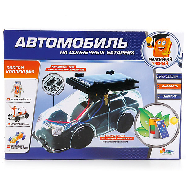 Набор для опытов включает в себя элементы для сборки автомобиля, работающего на воздухе. После сборки, для которой есть понятная инструкция, нужно шприцом закачать воздух в камеру, что послужит толчком для запуска двигателя. Все детали машины сделаны из безопасных для детей материалов.