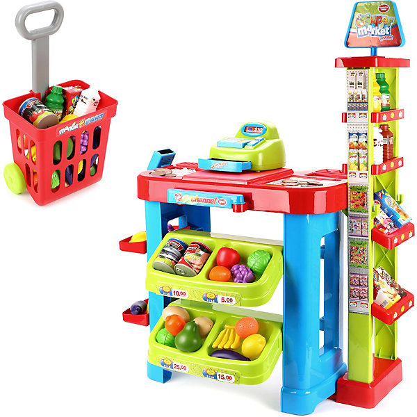 Игровой набор Наша Игрушка "Витрина супермаркета", с тележкой, Разноцветный, Игровой набор Наша Игрушка "Витрина супермаркета", с тележкой