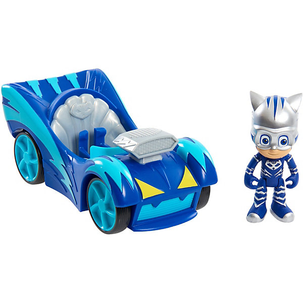 Фигурка выполнена в точности как герой из мультфильма. Кэтбой одет в синий костюм, а голова защищена серебристым шлемом. Ноги сгибаются, можно посадить в машинку. Кэтмобиль героя выполнен в сине-голубом цвете, легко ездит по ровной поверхности. Игрушка изготовлена из прочного и безопасного пластика.