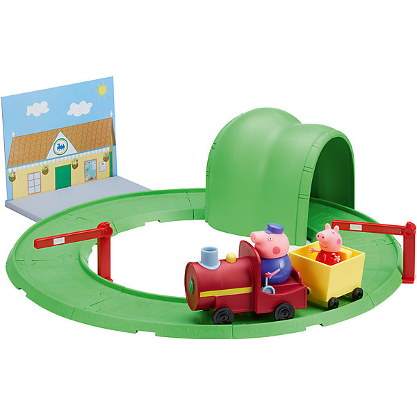 • комплектация: фигурка Свинки Пеппы, паровозик, вагон поезда, 8 частей трассы, 2 части туннеля, 2 шлагбаума, платформа, игровая карточка;