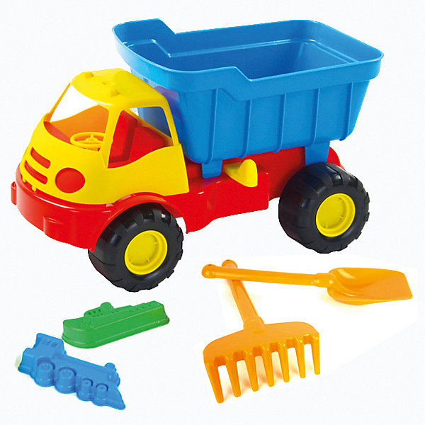 Игровой набор может подарить много положительных эмоций его обладателю. Благодаря прочному материалу, из которого сделан самосвал, в нем можно перевозить не только песок, но и игрушки, а также различные небольшие предметы. Устойчивость машины обеспечивается четырьмя колесами. Кузов транспортного средства подвижен, поэтому есть возможность загружать и разгружать небольшой грузовик. С помощью аксессуаров, идущих в комплекте, ребенок может не только создавать различные фигурки из песка, но также выполнять простейшие работы в саду. Занятия с игрушечным инвентарем могут содействовать развитию моторики, координации движений, мышления и фантазии. Игровой набор сделан из безопасного для здоровья материала, который даже при разломе не образует острых углов. Наполнение набора в ассортименте.