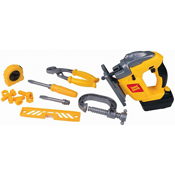 Набор инструментов с лобзиком предназначен для распиливания по дереву и другим материалам. Для более точной работы в комплекте идут рулетка, уровень и прочие необходимые детали. При нажатии на кнопку лобзика можно услышать реалистичные звуки работы инструмента.