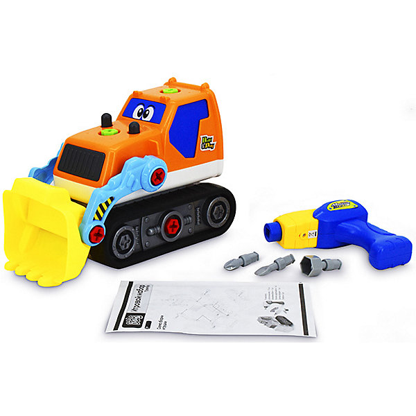 Красочный конструктор включает машину городской техники и шуруповерт, который работает как настоящий и издает при этом характерные звуки. Кроме того, инструмент можно использовать как двигатель для транспорта. Сделано из качественных материалов.