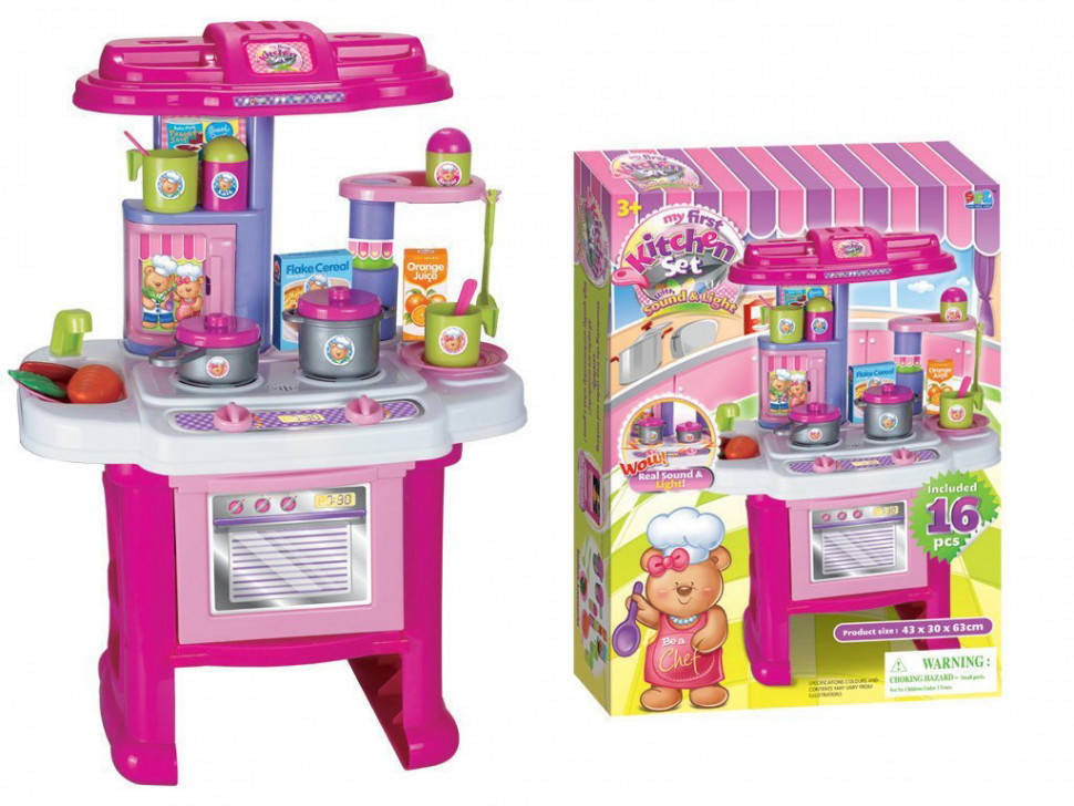 Детская кухня поможет ребенку попробовать себя в разных ролях, например: «побыть мамой» или «примерить» на себя профессию повара. Кухня с аксессуарами замечательно подойдет для захватывающего приготовления пищи и угощения любимых кукол и подруг. Этот набор выполнен в стильном дизайне и самого высокого качества. Детская кухня оснащена реалистичными звуковыми и световыми эффектами, которые сделают игру еще интереснее. Комплектация: