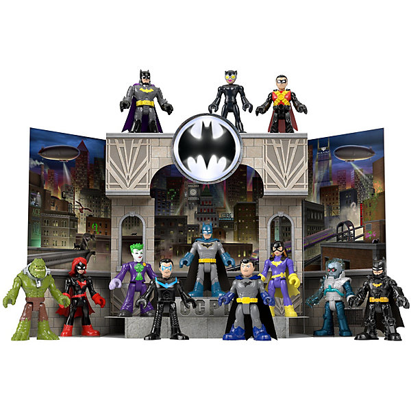 Компактный набор станет идеальным подарком для любителей персонажа Бэтмана. При открытии упаковки нужно найти в ней фигурки-сюрпризы и тематические аксессуары. Коробка разворачивается и превращается в игровую зону- Готэм Сити.
