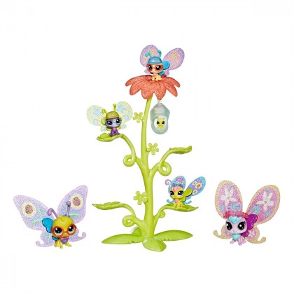 Откройте для себя семью бабочек Littlest Petshop с мягкими и гибкими крыльями благодаря этому игровому набору из 6 питомцев (2 классических, 3 мини и 1 пэт-подросток). Помимо самих зверюшек, Вы найдете еще и 8 аксессуаров в комплекте. Самый маленький член этого семейства – пэт-гусеничка в своем коконе.