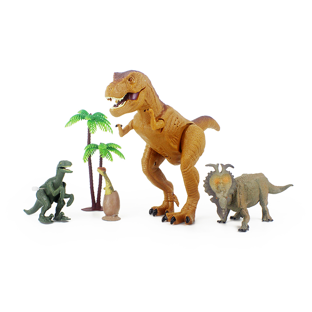 Игровой набор Mioshi Active "Хищник на охоте: Тираннозавр", динозавры: 4 шт., дерево, звук, свет, разноцветный (RS006-2), "Хищник на охоте: Тираннозавр"
