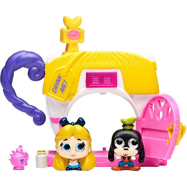 В наборе представлены милые фигурки героев Диснея с красивыми стеклянными глазками. Одна из них спрятана за волшебной дверкой и является эксклюзивной, а вторая стандартная. В комплекте идёт домик Алисы в виде чашечки с блестящей открывающейся дверкой и аксессуары. Всего в серии 11 различных наборов с мультяшными персонажами. Все дома совместимы между собой и легко соединяются, создавая целый город из сказочных строений. Изготовлен из качественных и безопасных материалов.