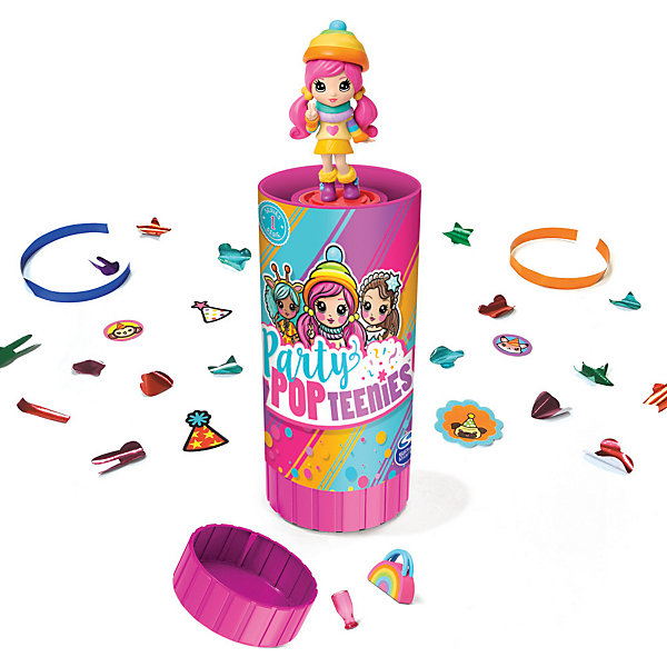 Внутри хлопушки спрятан сюрприз – миниатюрная куколка из коллекции Party Popteenies с аксессуарами и наклейками, которая появится на вершине хлопушки.
