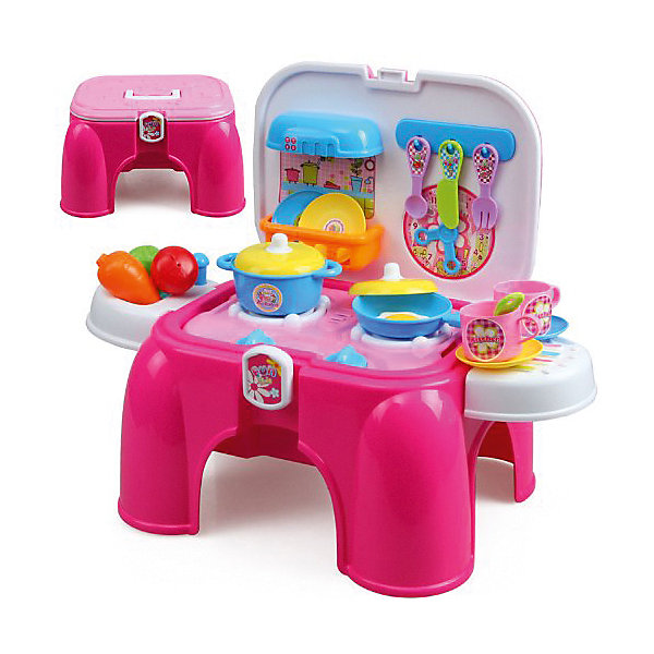 Игровой набор «Маленькая хозяйка» включает в себя кухонные предметы, посуду и плиту. С его помощью девочка сможет готовить куклам и плюшевым игрушкам вкусные блюда, она научится обращаться с бытовыми приборами. Газовая плита оснащена световыми и звуковыми эффектами, что делает игру реалистичней и интересней. Все предметы расположены в удобном столике-кейсе с ручкой, что позволит брать набор с собой на прогулку или в гости. Игрушки изготовлены из качественных безопасных материалов.