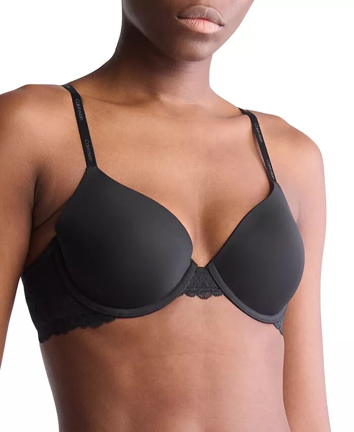 Женский бюстгальтер-футболка с легкой подкладкой и кружевной отделкой QF7837 Calvin Klein, черный