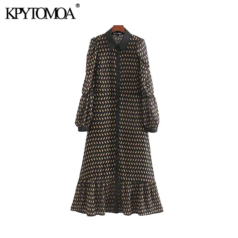 Vintage Stylish Ruffled Print Maxi Shirt Dress Women 2020 Fashion Lapel Collar Long Sleeve Female Dresses Casual Vestidos Mujer