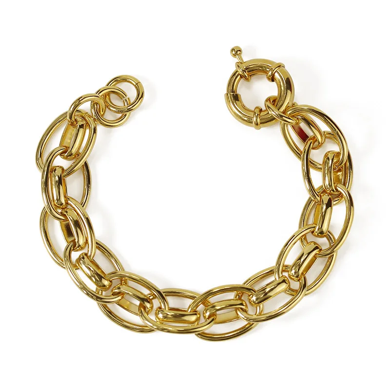1 Pc Vacuum Plating True Gold Fashion Hip-hop Personality Exaggeration Trendy Style Rough Chain Bracelet Woman