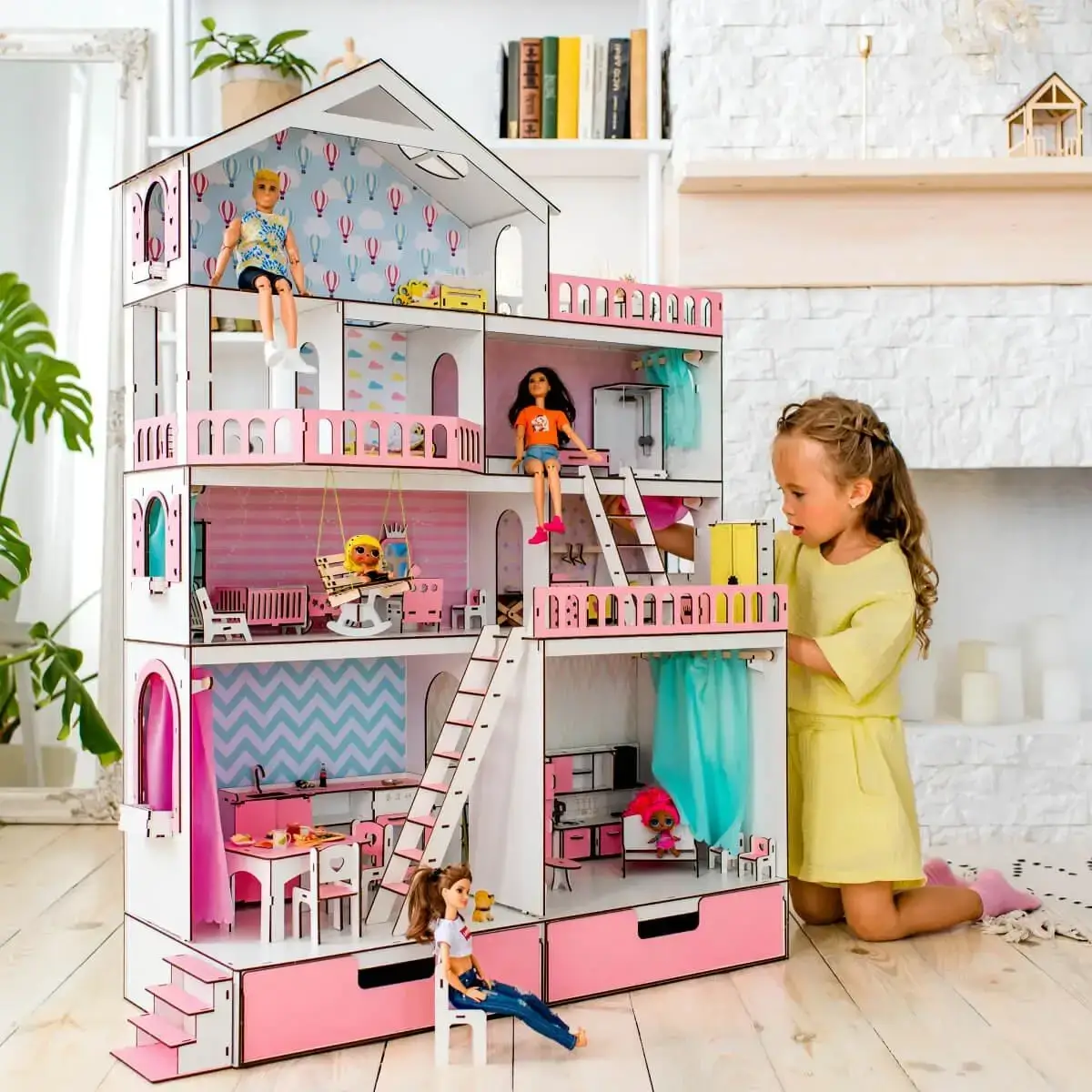 - Домик на 8 комнат (включает 4 этажа, огромный балкон, 2 террасы, 3 лестницы, 2 ящика для хранения аксессуаров)