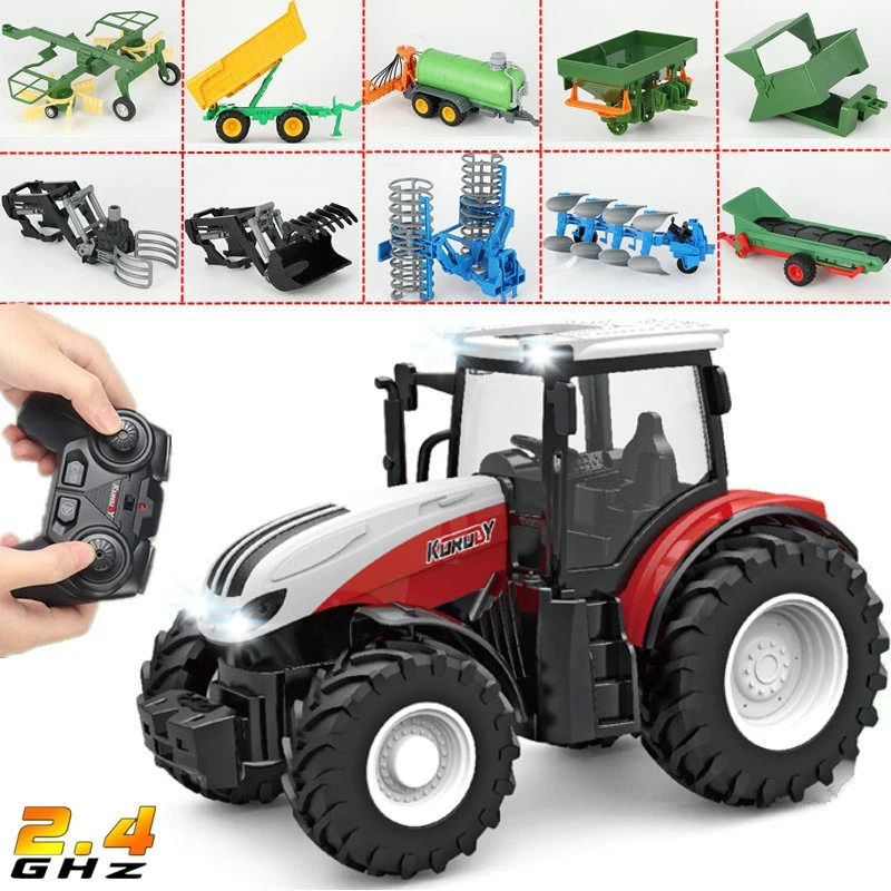 Игрушечный фермерский набор 1/24 с дистанционным управлением, трактор, прицеп со светодиодной фарой, 2,4 ГГц, автомобиль, грузовик, симулятор сельского хозяйства для детей, подарок для детей