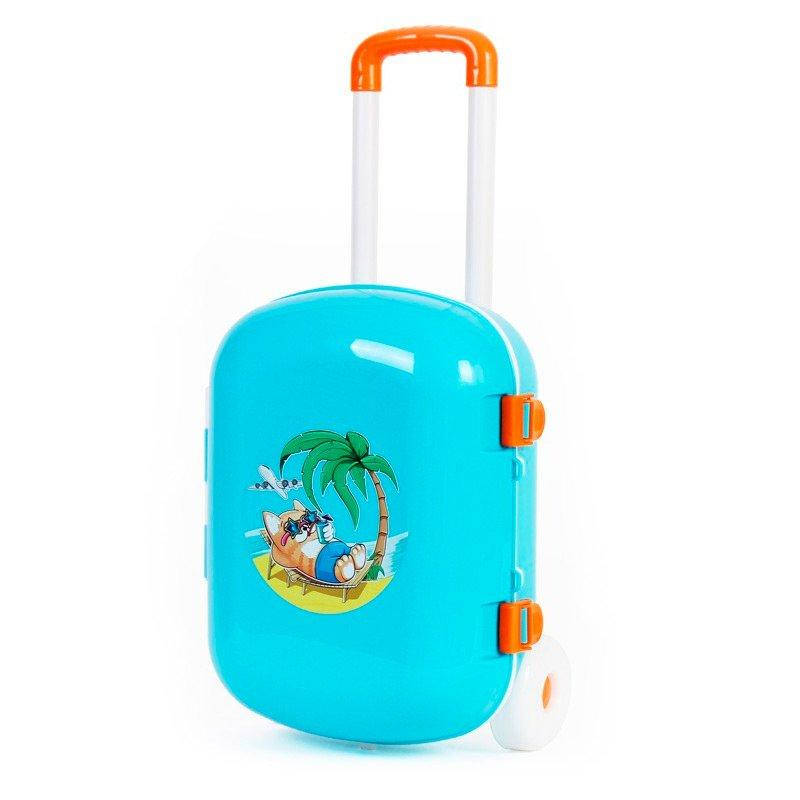 Игрушечный чемодан "ТехноК" — интересный, функциональный и очень похож на настоящий «взрослый» чемодан. Изготовлен из прочного и качественного пластика. Яркий голубой цвет чемодана и оригинальная наклейка непременно привлекут внимание малыша к игрушке.Чемодан комфортный для детей разного возраста и роста благодаря ручке, которая регулируется. Открытая крышка чемодана фиксируется в нескольких положениях. Поэтому ребёнок сможет легко класть и вынимать вещи из него. А надёжные защёлки позволяют закрывать крышку и хранить игрушки внутри чемодана. Кроме того, большие крепкие колёса помогают ребёнку свободно перевозить чемодан.С игрушкой "Чемодан ТехноК" девочки и мальчики спланируют свои увлекательные путешествия и используют её в других интересных играх.Размер: 34.5 х 25 х 16 см.