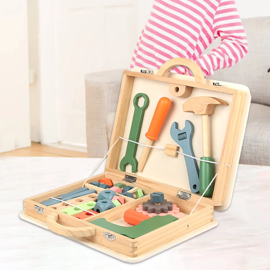 Игрушечный ящик для инструментов Монтессори, для детей, деревянный ящик для инструментов, инструменты для сборки