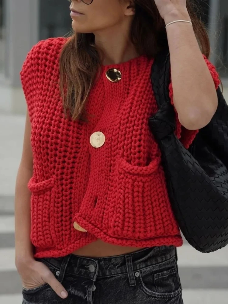 Knitted Sweater Women's Casual Loose Knitted Cardigan Fashionable Versatile Knitted Vest Top