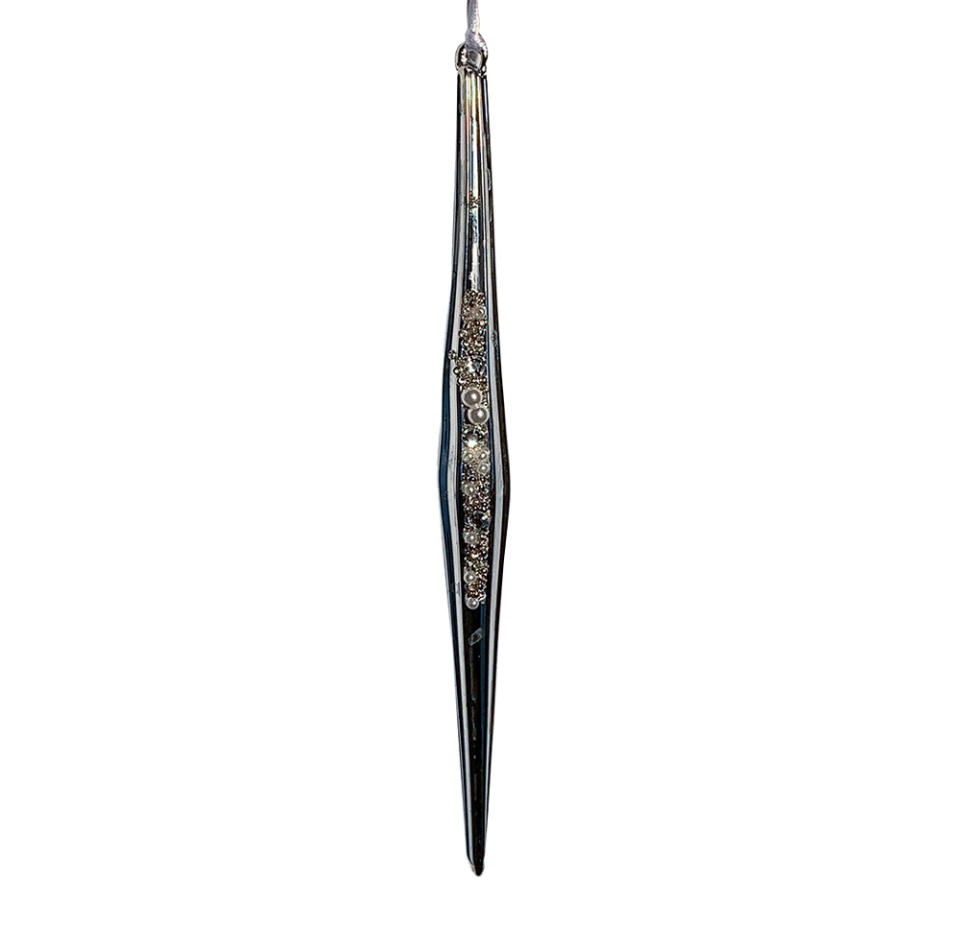 Игрушка для елки "Коллекция Традиции" Капля рифленая округлая матовая с камнями, цвет серебро, 20 см, стекло, Великобритания