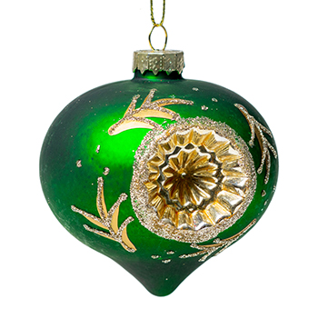 Игрушка для елки "Луковица" красная, зеленая с золотым рефлектором "Коллекция Традиции" Goodwill 8 см, Китай