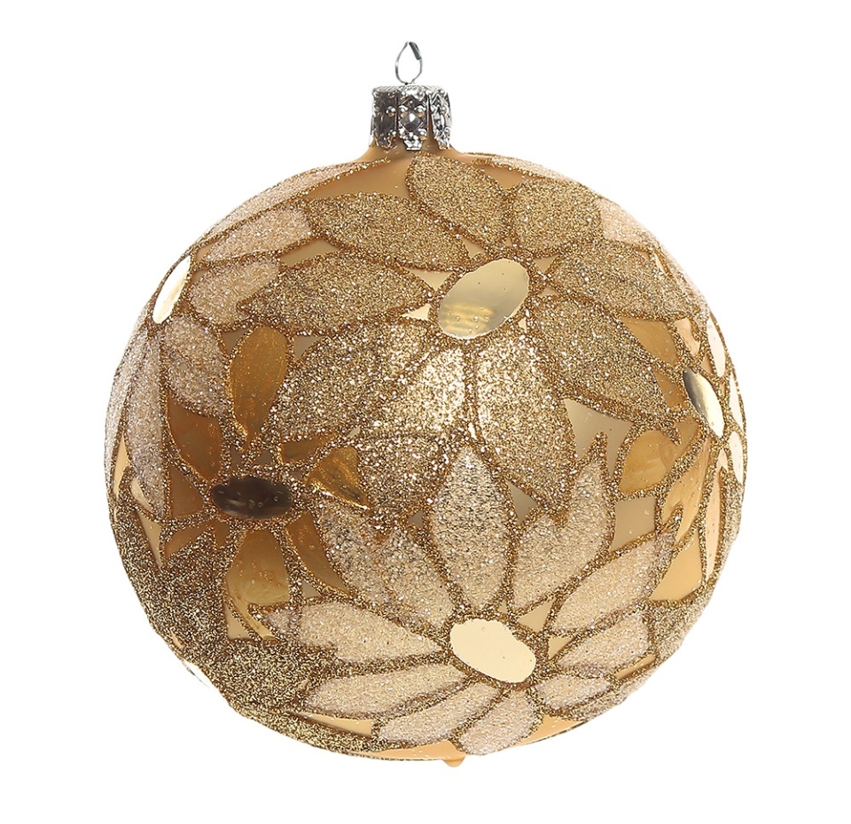 Игрушка для елки Christborn "Коллекция Праздник" Шар золотой "Цветочная поляна" Германия 10см, стекло, ручная работа