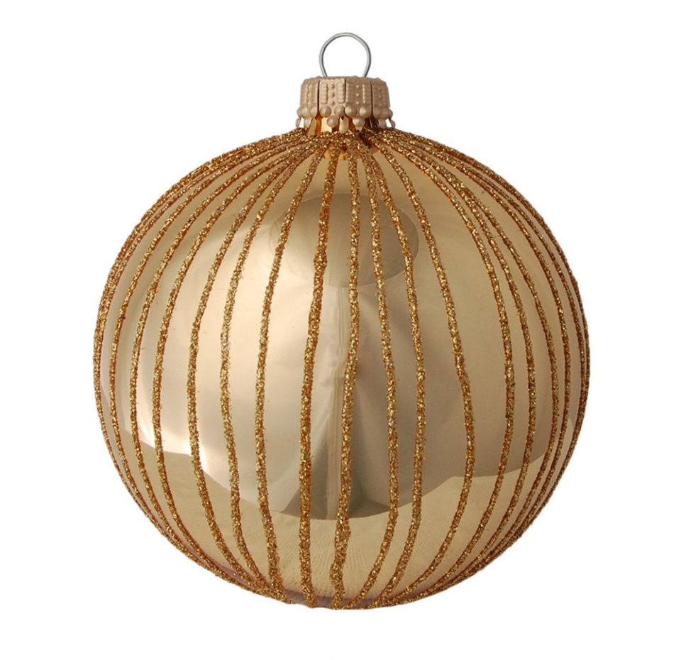 Игрушка для елки Krebs "Коллекция Традиции" Шар в полоску 10 см белый, золотой стекло, ручная работа, Германия