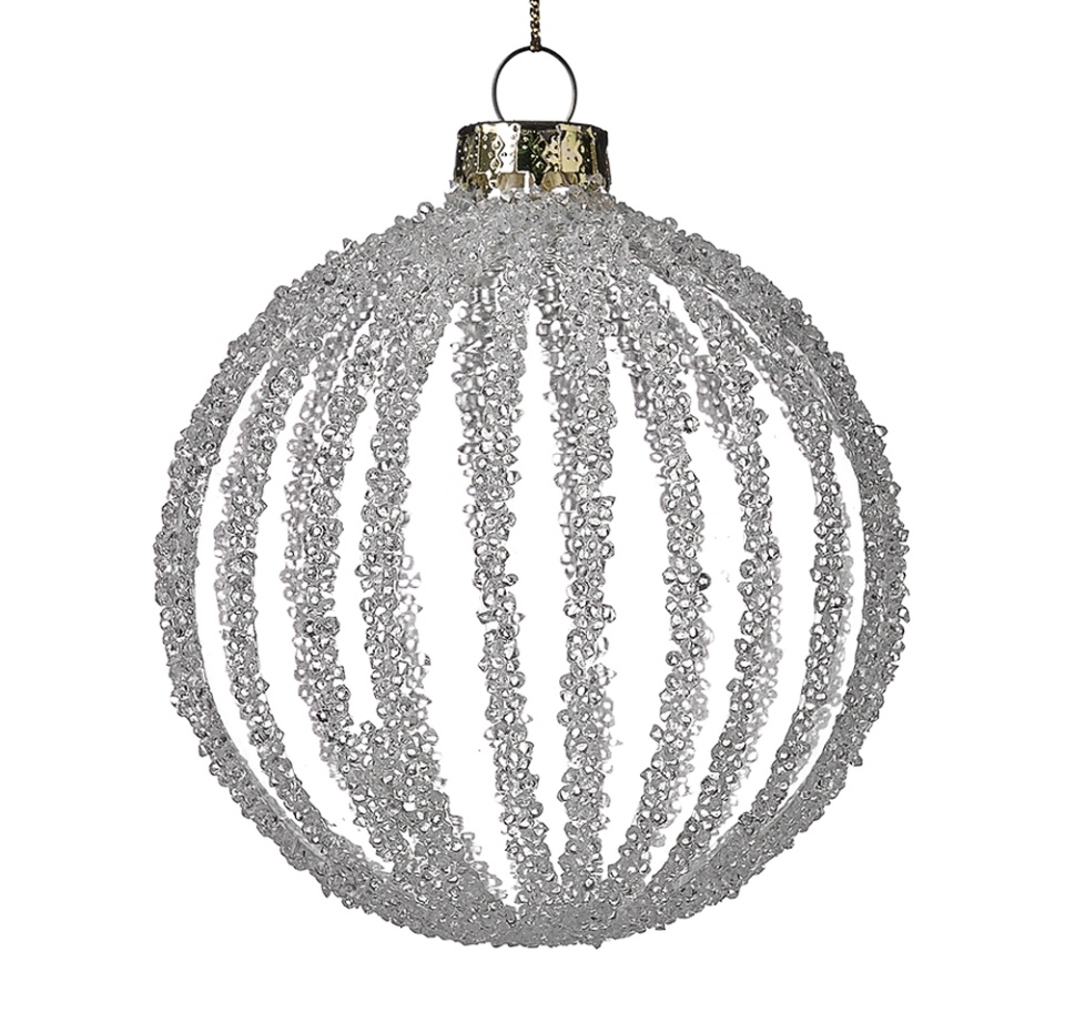 Игрушка для елки Yancheng Shiny «Коллекция Праздник» Шар в полоску в обсыпке белый матовый 8см, стекло, Китай