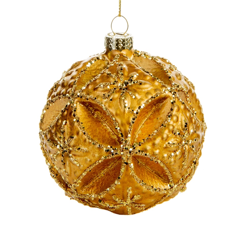 Игрушка для елки Yancheng Shiny Коллекция Традиции Шар с орнаментом блестящая бабочка 8 см цвет золотой, стекло, Китай