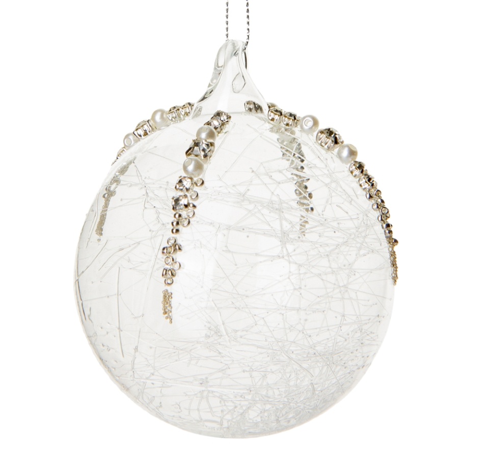 Игрушка для елки Yancheng Shiny "Коллекция Традиции" Шар с орнаментом и нитями внутри 8 см, цвет прозрачный, стекло, Китай