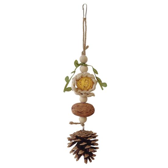 Игрушка для жевания птиц, дизайн сосновой шишки, крючок со шнурком, устойчивый к укусам, легко повесить, облегчение A