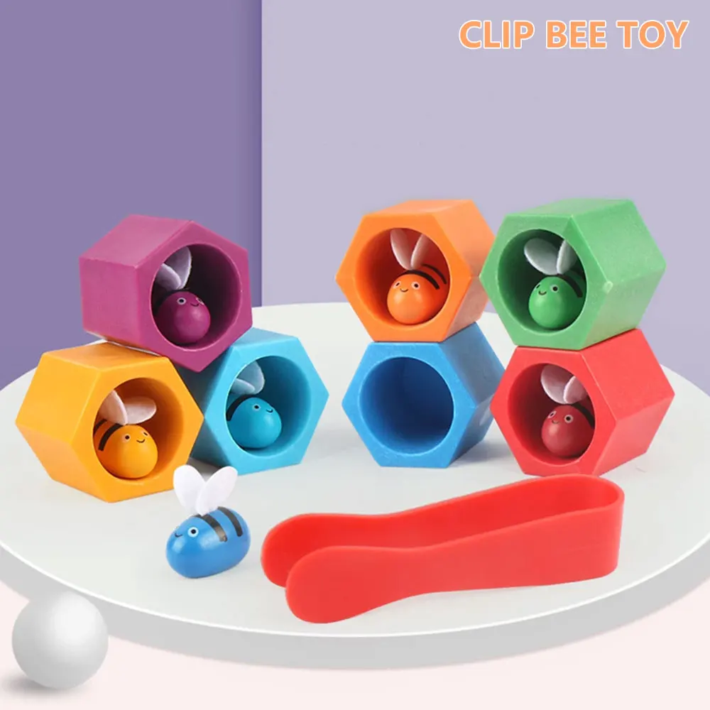 Игрушка для мелкой моторики малыша, зажим, Пчела в улье, подходящая игра Монтессори, деревянная игрушка-головоломка для сортировки цветов, п...