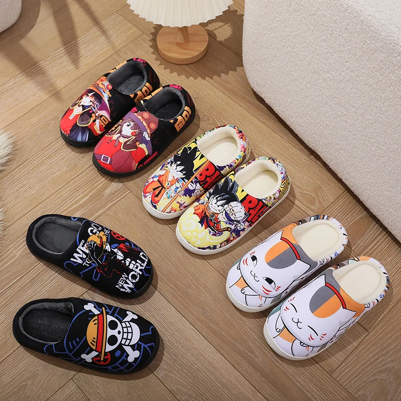 Anime Dragon Ball Goku Vegeta Warm Plush Cosplay Slippers Couple's Indoor Non-slip House Slides Toe Wrap Home Cotton Shoes Gift