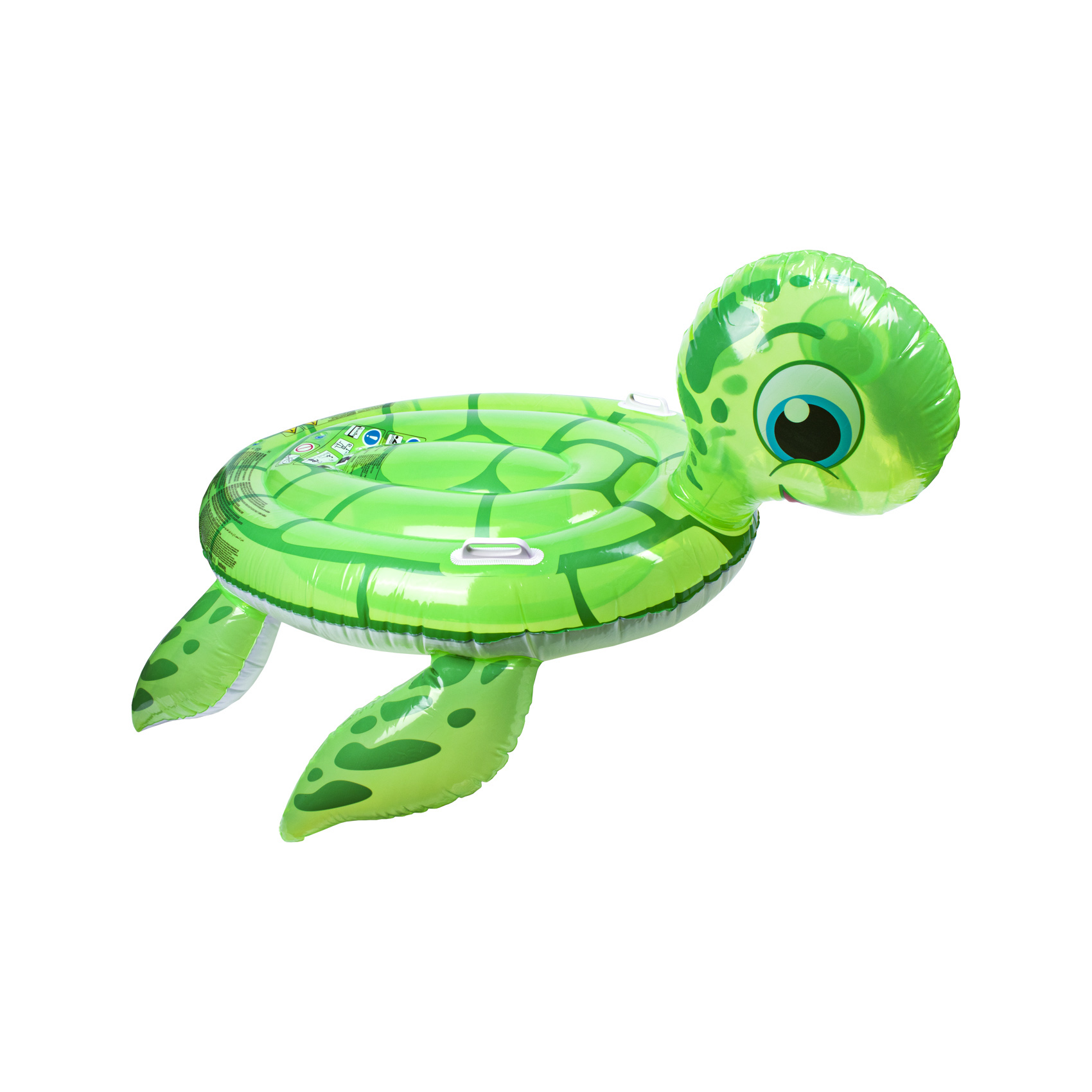 Надувная игрушка выполнена в виде объемной забавной черепахи зеленого цвета. Предназначена для развлечения деток старше 3 лет, исключительно на мелководье под присмотром взрослых. Подобный аксессуар разнообразит купание, подарит немало положительных эмоций и впечатлений. Выдерживает максимальную нагрузку – до 45кг. Надувная игрушка изготовлена из прочного и безопасного ПВХ, в составе которого не содержатся вредные компоненты. Материал отличается эластичностью и надежностью. Не впитывает грязь, не выгорает на солнце, легко отчищается от загрязнений. В конструкции предусмотрены пластиковые крепкие ручки, которые позволят малышу удерживаться над водой. Размер изделия – 140см.