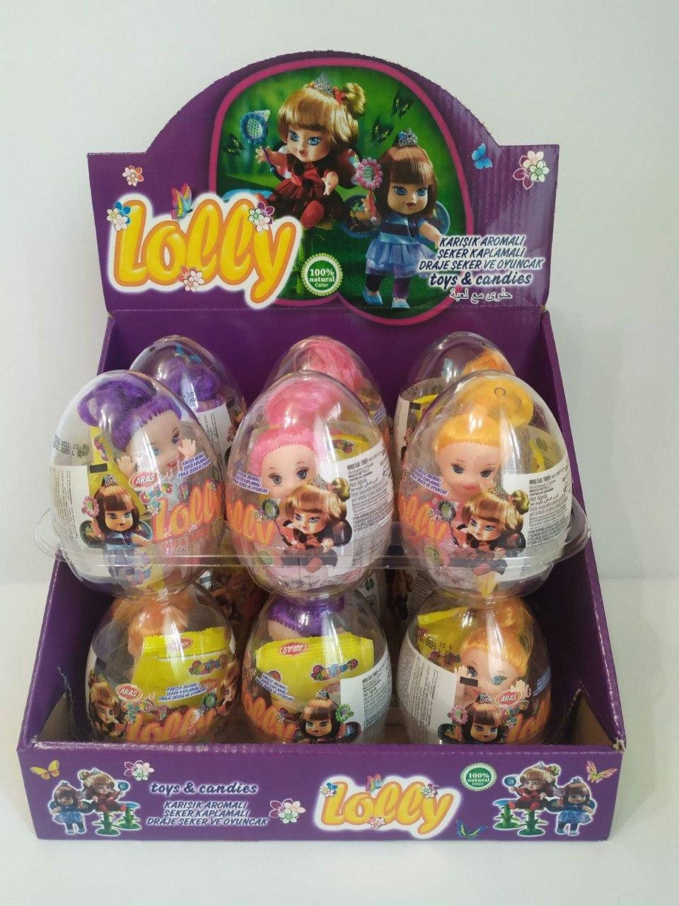 Игрушка с фруктовым драже в пластиковом яйце Aras LOLLY 12 шт