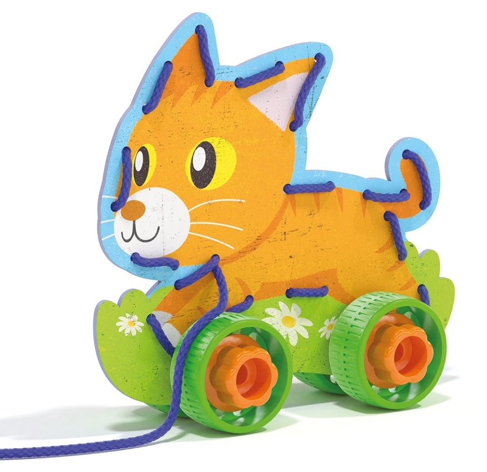 Игрушка-шнуровка «Животные» развивающая на колёсах 4+, Quercetti, 1 шт.