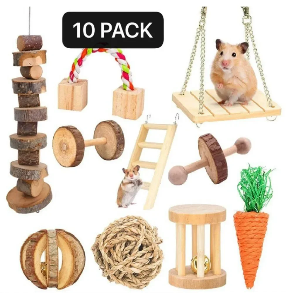 Игрушки в виде хомяка из 10 предметов, деревянная игрушка для кусания, одноколесная штанга, хлопковая веревка для моркови, яблока