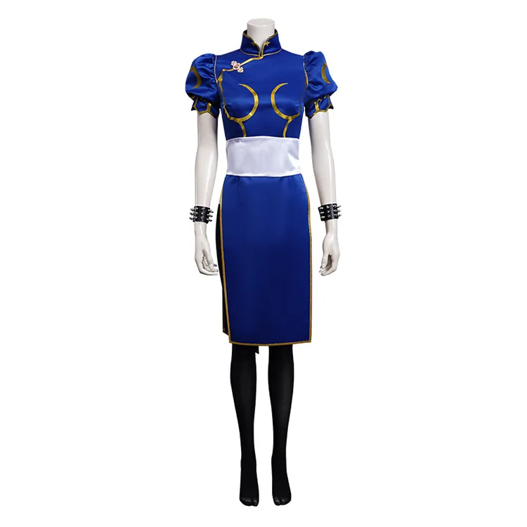 Игры, костюмы для косплея Чунь ли на Хэллоуин, ярко-голубое платье-Ципао с поясом, женская одежда для девочек
