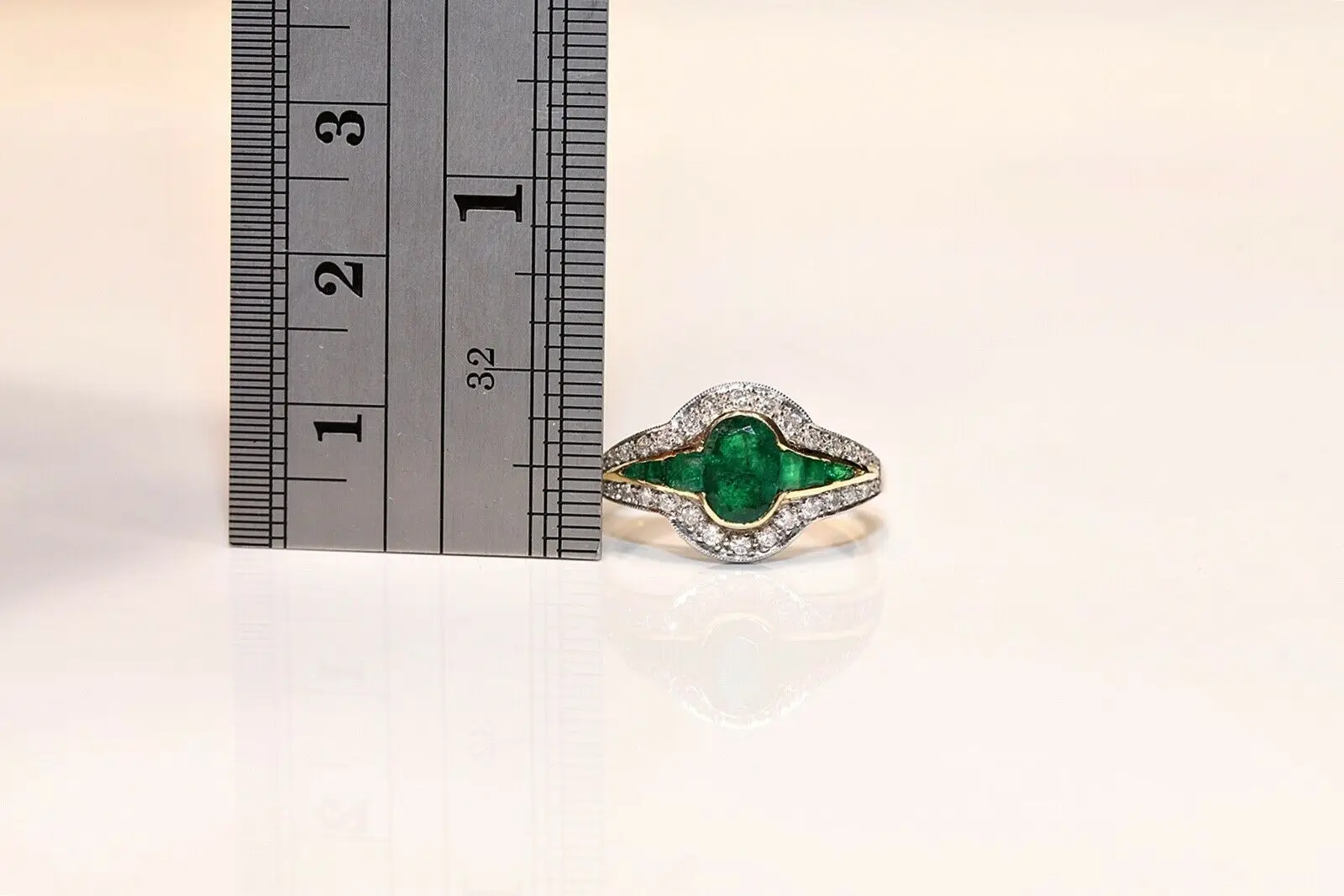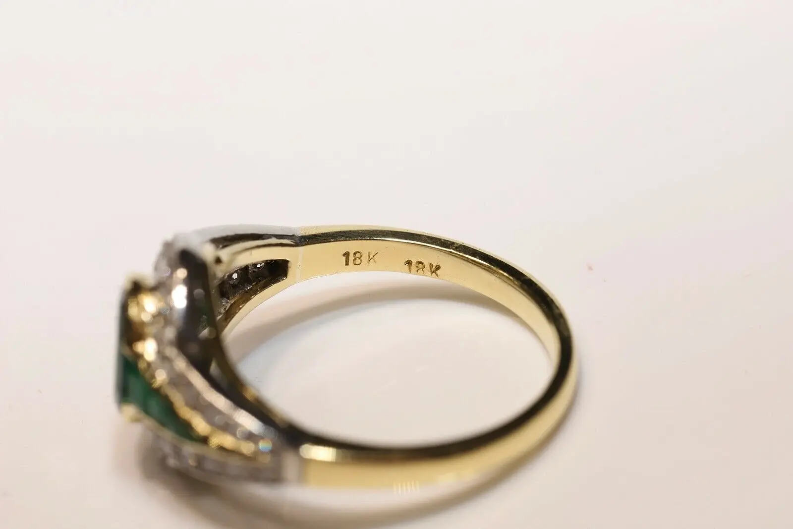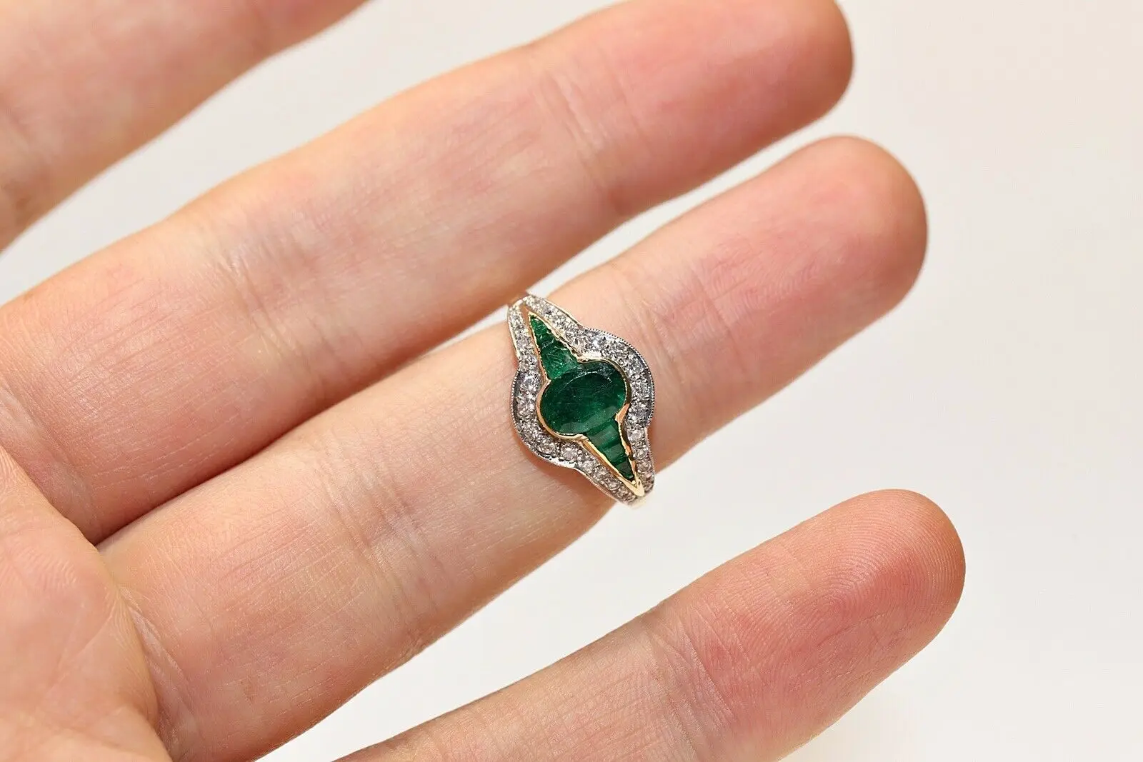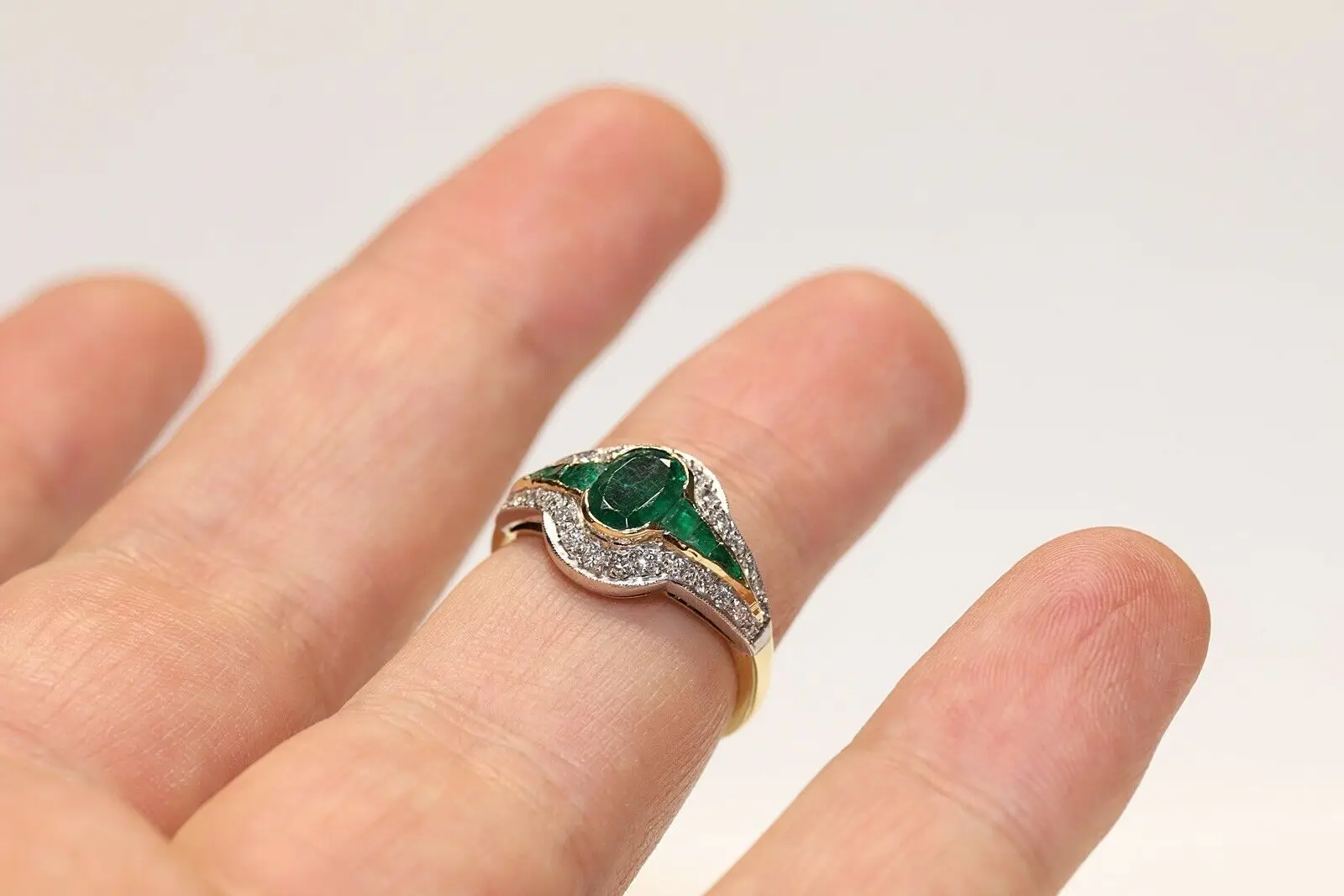 Идеальное винтажное красивое кольцо из 18-каратного золота с натуральными бриллиантами и изумрудами