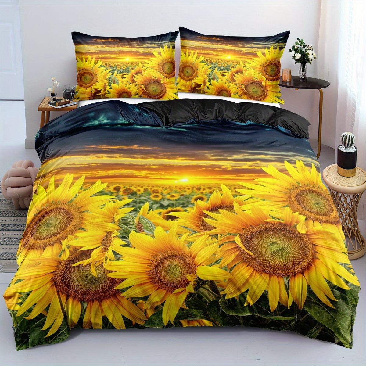 Идиллическая серия «Подсолнухи» Печатный пододеяльник наволочка Цифровая печать Набор из трех предметов EU single 135*200
