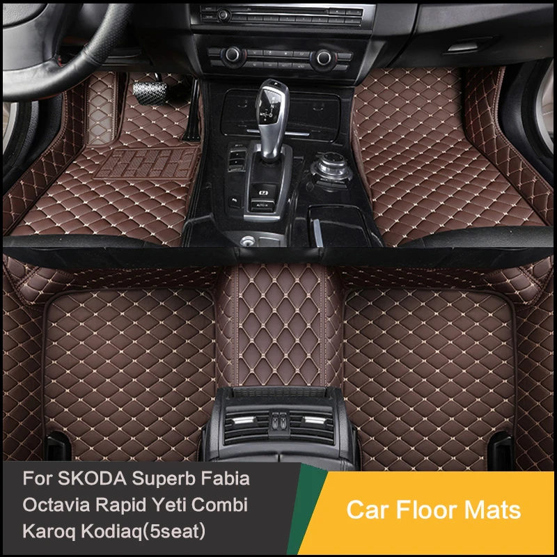 Изготовленные на заказ автомобильные коврики специально для SKODA Superb Fabia Octavia Rapid Yeti Combi Karoq Kodiaq (5 мест) Кожаный ковер Автомобильные аксессуары