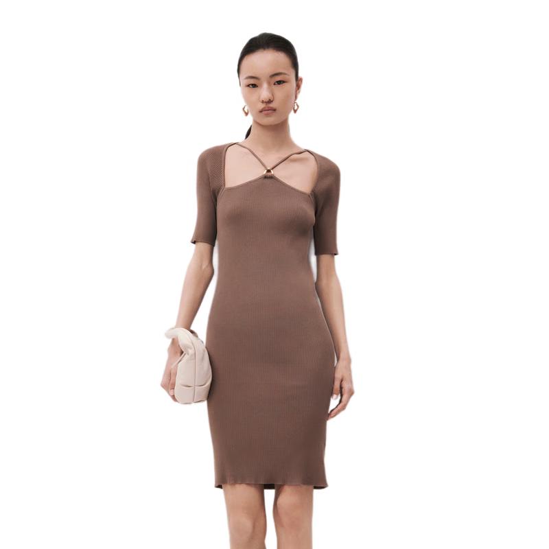 Издание Женское Вязаное Облегающее Платье с Перекрестной Бретелью-Холтером M