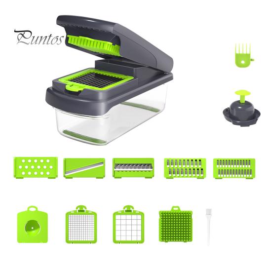 Измельчитель овощей 14 в 1, набор из нержавеющей стали, измельчитель лука с контейнером, овощерезка для кухни Essential серый/зелёный
