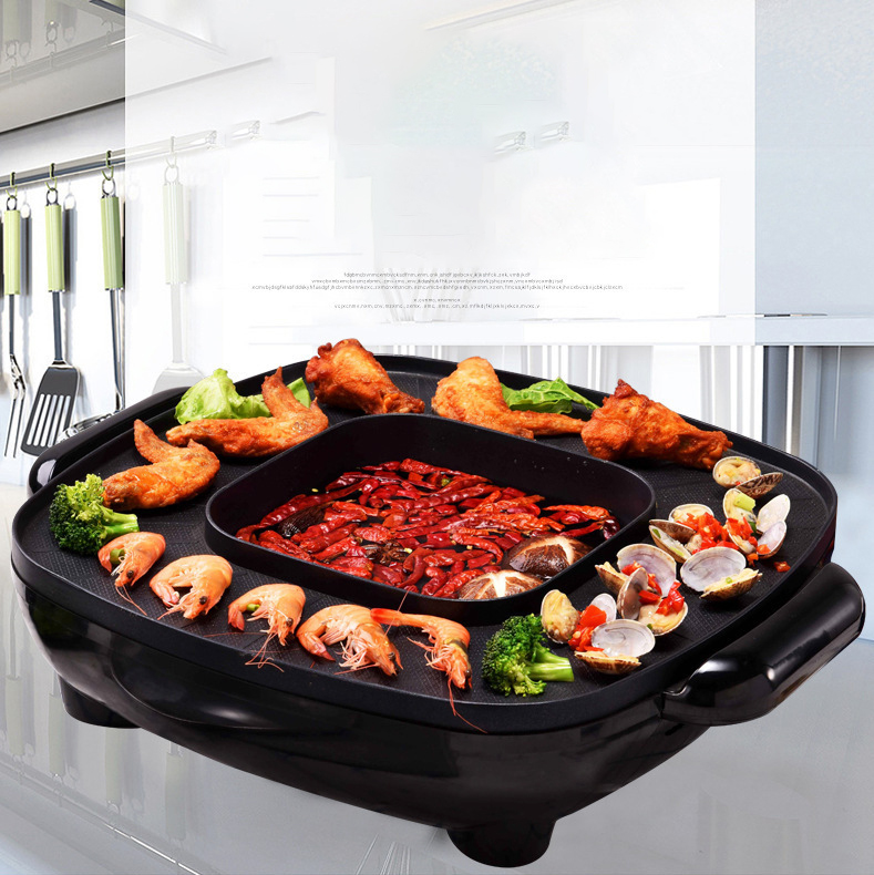 hotpot Korean Household Electric Ovens Smokeless Nonstick Barbecue Machine Electric hotplate Teppanyaki Grilled Meat Pan 1600W