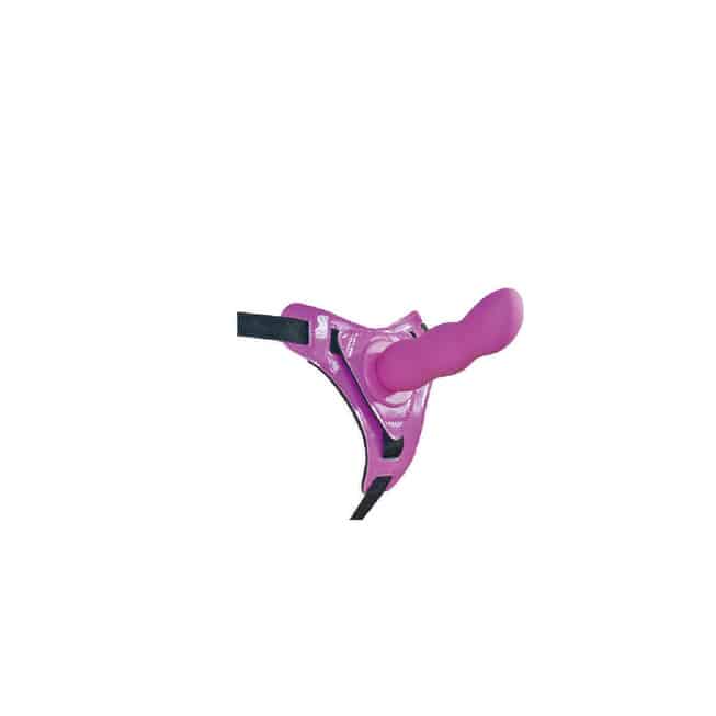 Трусики со сменной насадкой из силикона. Материал трусиков - лакированная искусственная кожа, имеют мягкую внутреннюю отделку, размер регулируется при помощи лент.